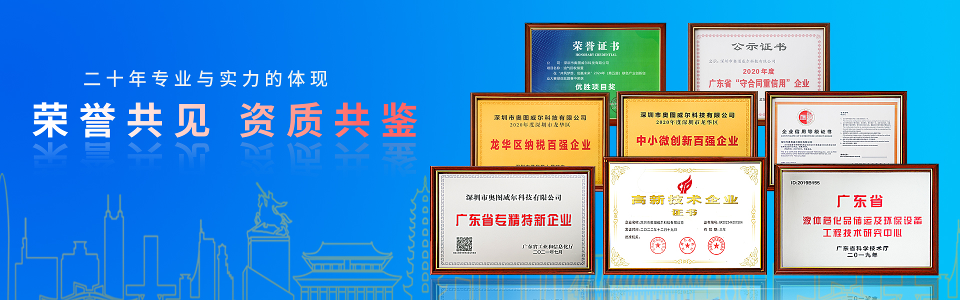 深圳市奧圖威爾科技有限公司創(chuàng)立于2003年。公司總部座落于全球極具經(jīng)濟與創(chuàng)新活力的粵港澳大灣區(qū)核心城市—深圳,是國家級高新技術企業(yè)、廣東省專精特新企業(yè)、龍華區(qū)中小企業(yè)納稅百強企業(yè)、龍華區(qū)中小企業(yè)創(chuàng)新百強企業(yè),并被認定為廣東省?;分悄軆\及環(huán)保設備技術研究中心、深圳市兩化融合貫標企業(yè)。